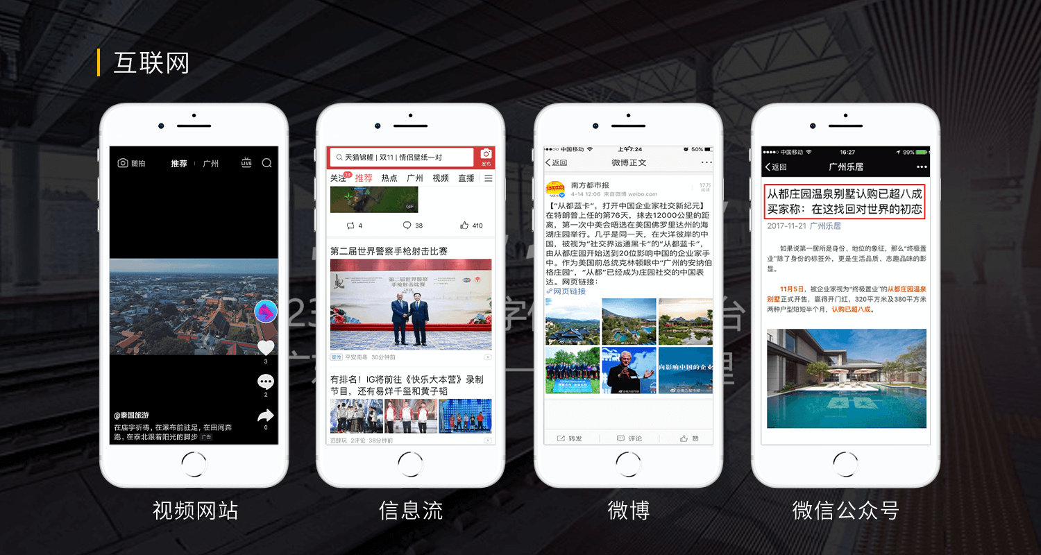 传媒 + 互联网 + 活动及其他三位一体,构建全媒体全网创意整合营销全案服务体系。